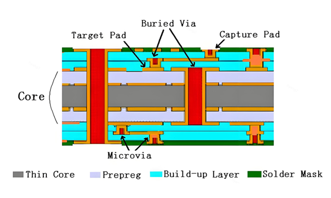 HDI作为高密度互连技术的核心载体,专注于解决电子设备微型化与高性能化的互联需求。其通过微盲孔、40/40μm精细线路及叠孔(Stack via)、填孔(Copper fill)等工艺实现超高密度布线,使元器件在紧凑空间内达到最优布局。该技术具备任意层互连(ELIC)、高纵横比微孔加工及卓越信号完整性控制能力,可有效提升高频性能并减少干扰。江门二厂已成功开发10L/12L ELIC、2+N+N+2、4+N+4等先进结构,广泛应用于智能手机、高端穿戴设备及医疗微系统等领域,持续推动电子产品向轻薄化、多功能化发展。