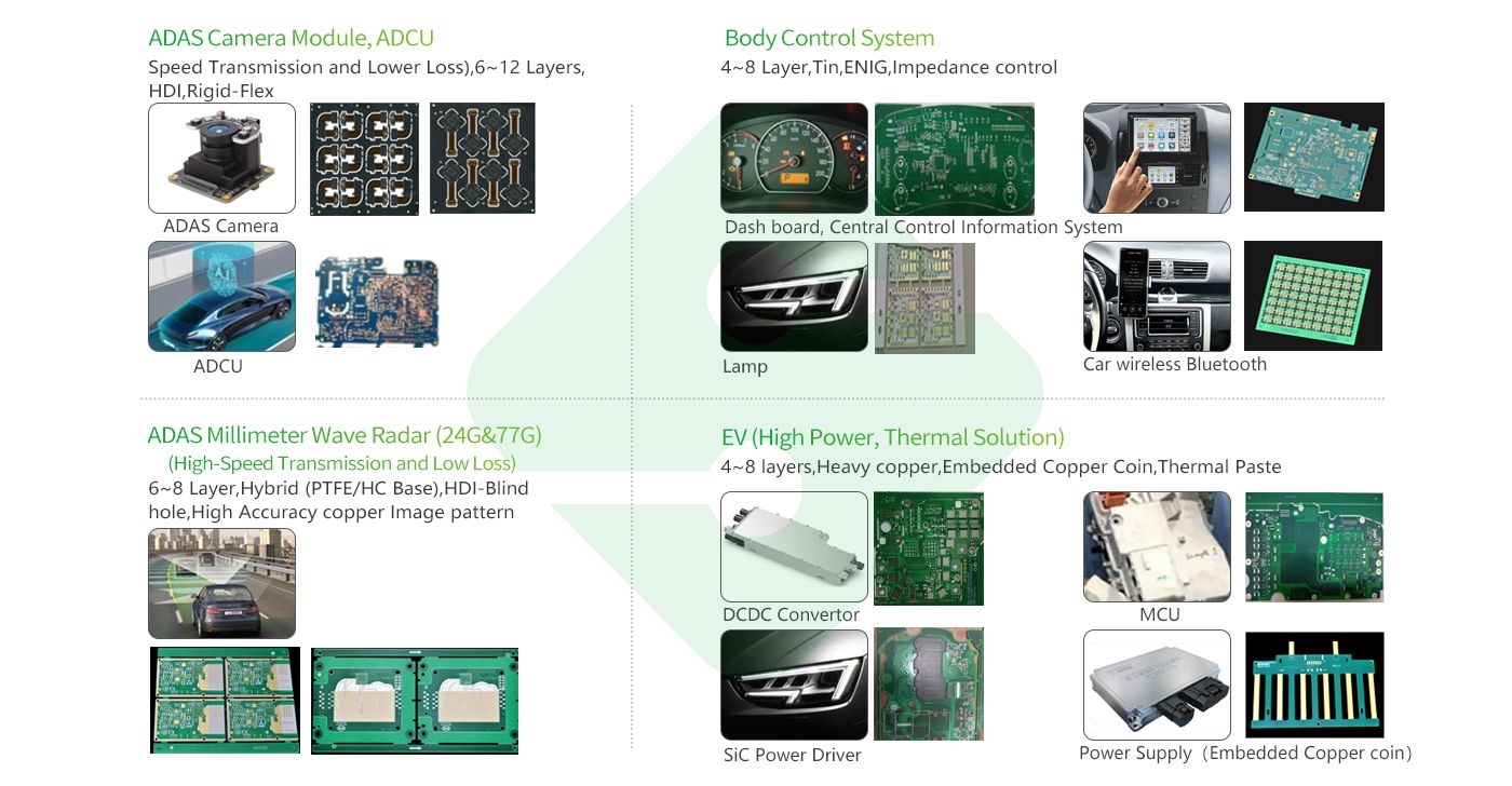 Suntak Technology obtained the IATF16949 certificate for the first time in 2005, and reached the strict quality requirements for automobile products. To become the world’s top automotive PCB supplier, Suntak Technology has invested a large amount of manpower and materials into the R&D and production of automotive PCB, and implemented strict controls on the production process, quality and traceability, to guarantee the quality for customers. Our PCB products (thick copper, HDI, high frequency and high speed, etc.) have been extensively applied in the electronic driving system, central control system, vehicle electronics, and communication entertainment system, and can also simultaneously meet the technical development requirements for longer service life, higher temperature load, and smaller design distance.
